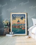 Les tendances déco 2025 (terracotta, verts sauge, bleus nuit) s’accordent avec ces aplats sérigraphiques. L’affiche régionale s’intègre dans des intérieurs contemporains sans perdre son accent.