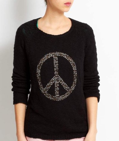 Difficile de ne pas craquer sur ce pull noir symbole de paix, d’où son nom. Des petits strass scintillants sont incrustés sur le devant, formant le célèbre signe "Peace".